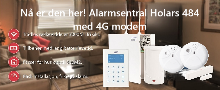Her finner du våre trådløse GSM Bedrift og Boligalarmer. Vår alarmsentral Holars 484 er kablet & trådløs å har mange tillbehør, exempel: røykvarslere, varmedetektor, IR-detektorer, vannvarslere, magnetkontakter, panikk-knapper, ute-sirener, inne-sirener, strømkontakter, fjernkontroller, fjernbetjeningspaneler og mer.